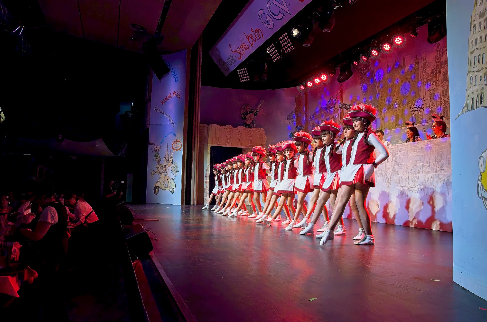 Wir sind in dieser Kampagne 16 Mädels und tanzen an allen Prunksitzungen des GCV